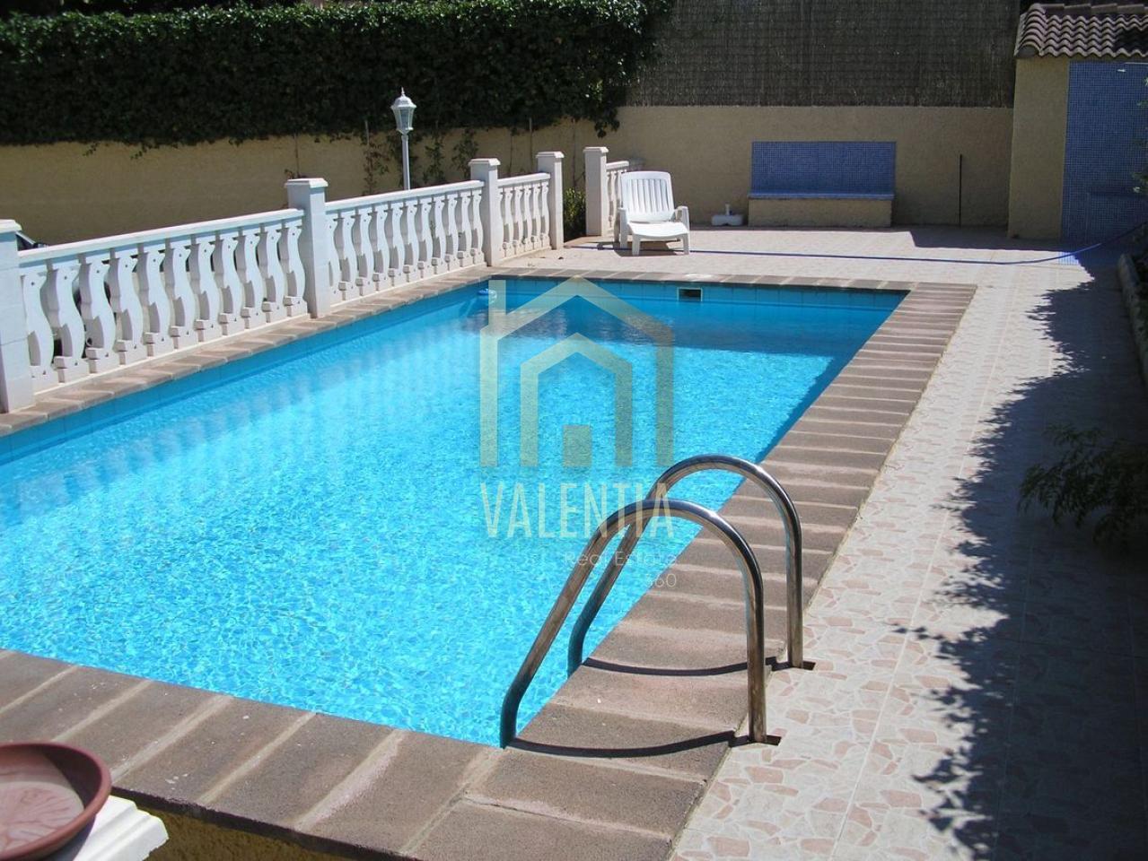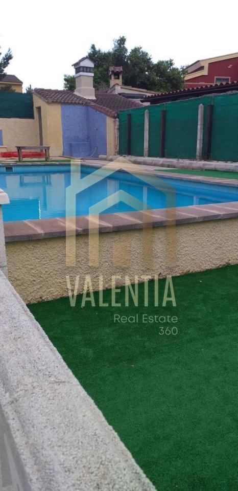 Chalet independiente de 2 alturas con 550 metros de parcela con piscina chapada y con depuradora, con dos aires acondicionados uno en cada planta, ventanas de climalit, tarima flotante en la planta de arriba, con un baño completo con ducha arriba y un aseo abajo, la parcela es de hormigón, con pocas plantas y poco mantenimiento y consta de garaje, esta vivienda es una oferta irrechazable respecto al precio, por causa de que dentro esta viviendo un matrimonio con hijos que tenían un contrato de venta aplazada y no han querido ejecutar la compra y quieren seguir viviendo de alquiler. Características