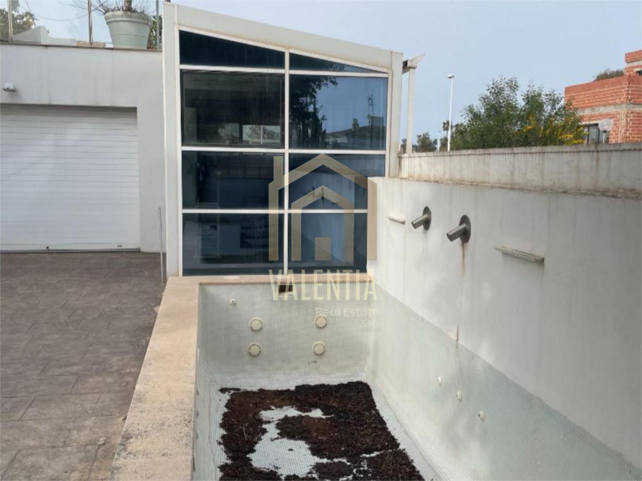 En la zona de jardín encontramos la piscina, un jacuzzi, una ducha exterior en el jardín, en la parte trasera la zona de barbacoa con una gran zona de jardín para reuniones familiares, cenas etc., y un garaje cubierto con capacidad para 4 vehículos.
