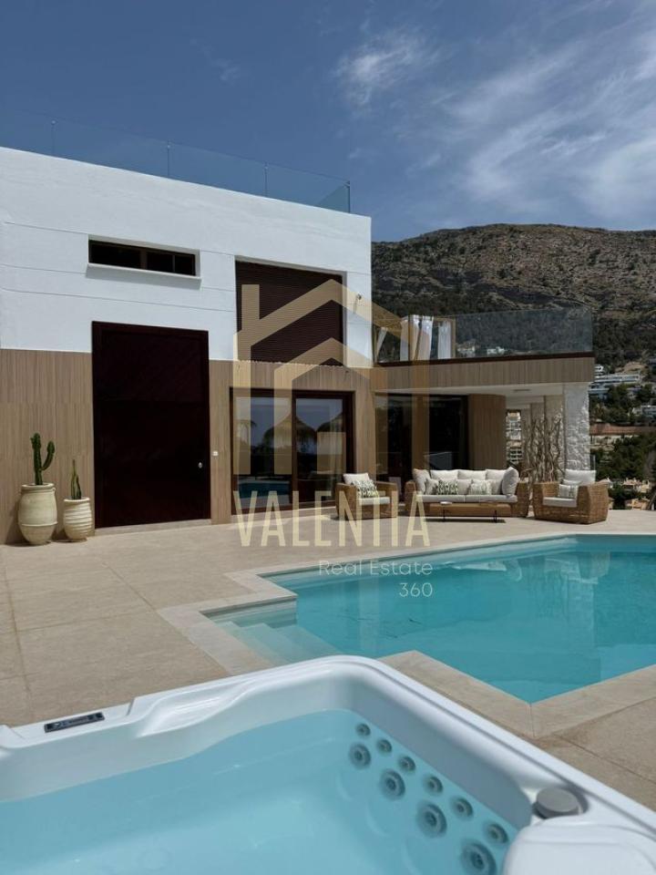 villa lujo, 4habita, 4 baños, gimnasio, bodega, sala cine, spa, piscina agua salada, riego goteo, barbacoa, amueblada, posibilidad alquiler opcion de compra, se acepta criptomoneda, vista mar y montaña, la villa esta en lo mas alto. Características